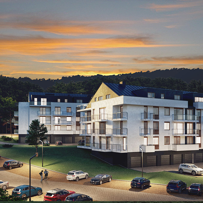 Przedstawione na niniejszej stronie wizualizacje maja charakter pogladowy i stanowia wylacznie material pomocniczy ulatwiajacy przyszlym nabywcom mieszkan zorientowanie sie w ogolnym wygladzie realizowanego Przedsiewziecia Deweloperskiego. Przedstawione wizualizacje nie stanowia oferty w rozumieniu ustawy z dnia 23 kwietnia 1964 r. Kodeks cywilny (Dz. U. z 2014 r., poz. 121; ze zm.).